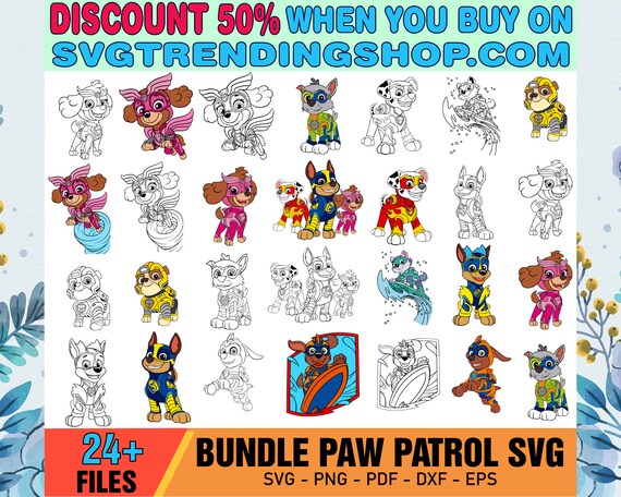 24 Paw Patrol Mighty Pups Bundle Svg Paw Patrol Svg Carton Etsy